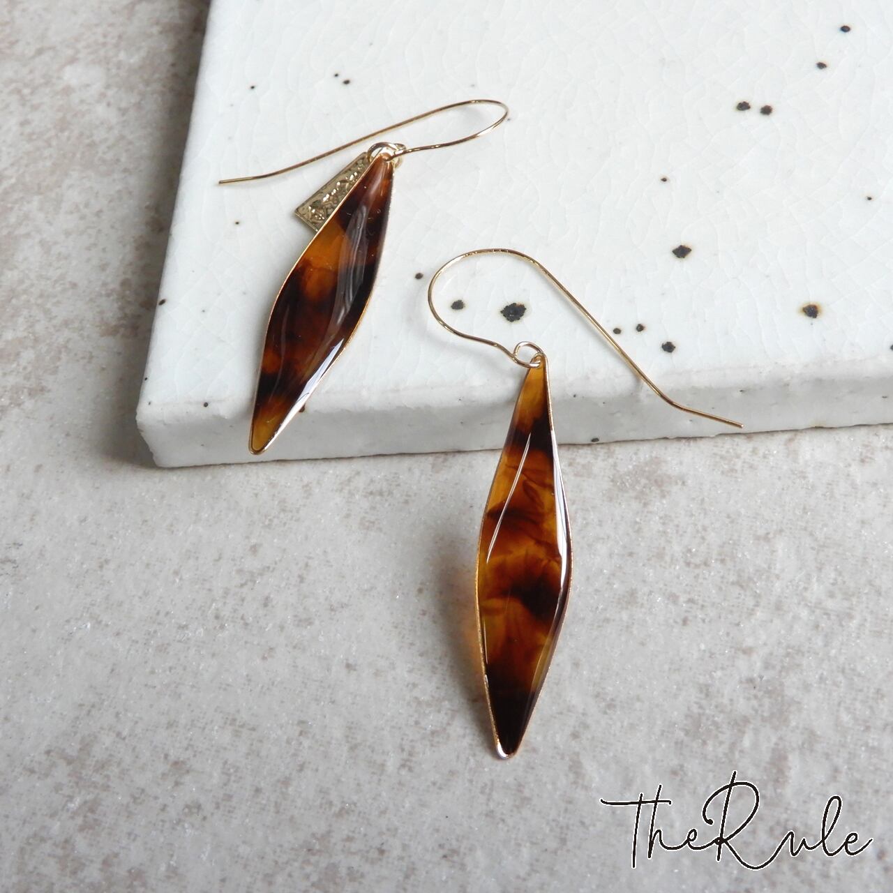 ひねりをきかしたリーフをモチーフにしたシンプルなフックピアス