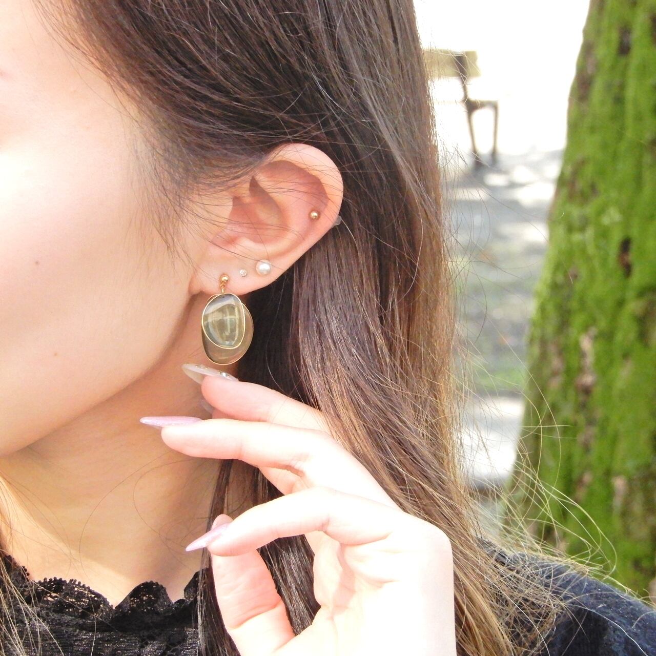落ち着きのあるカラー配色でお顔周りを華やかに彩るピアス。