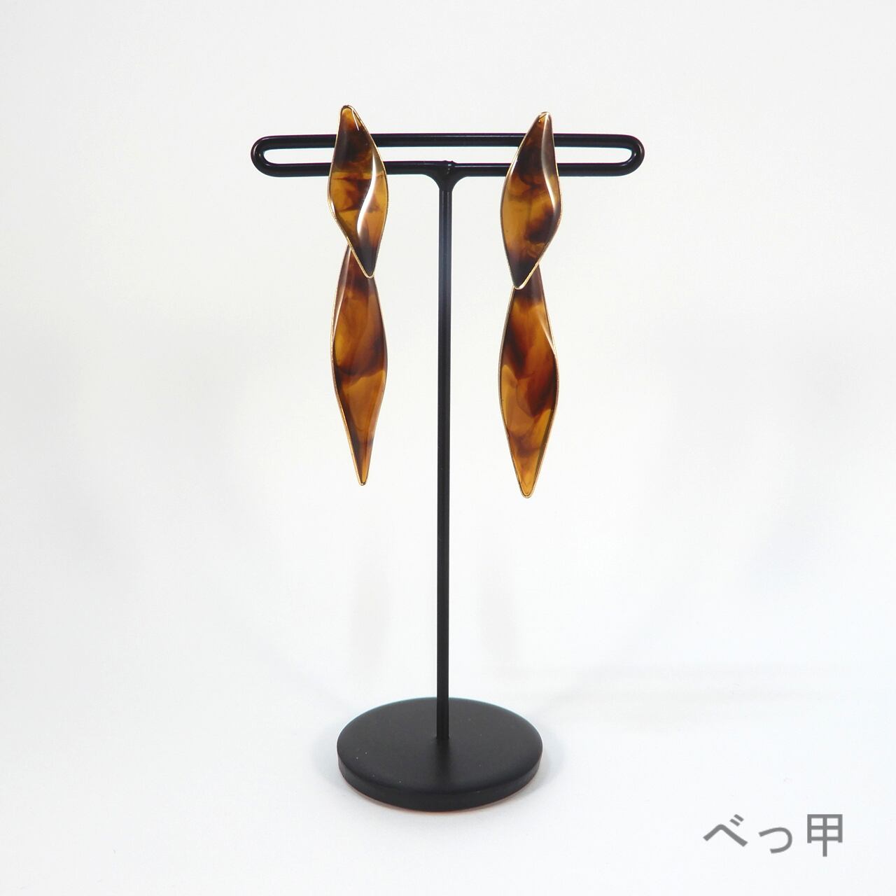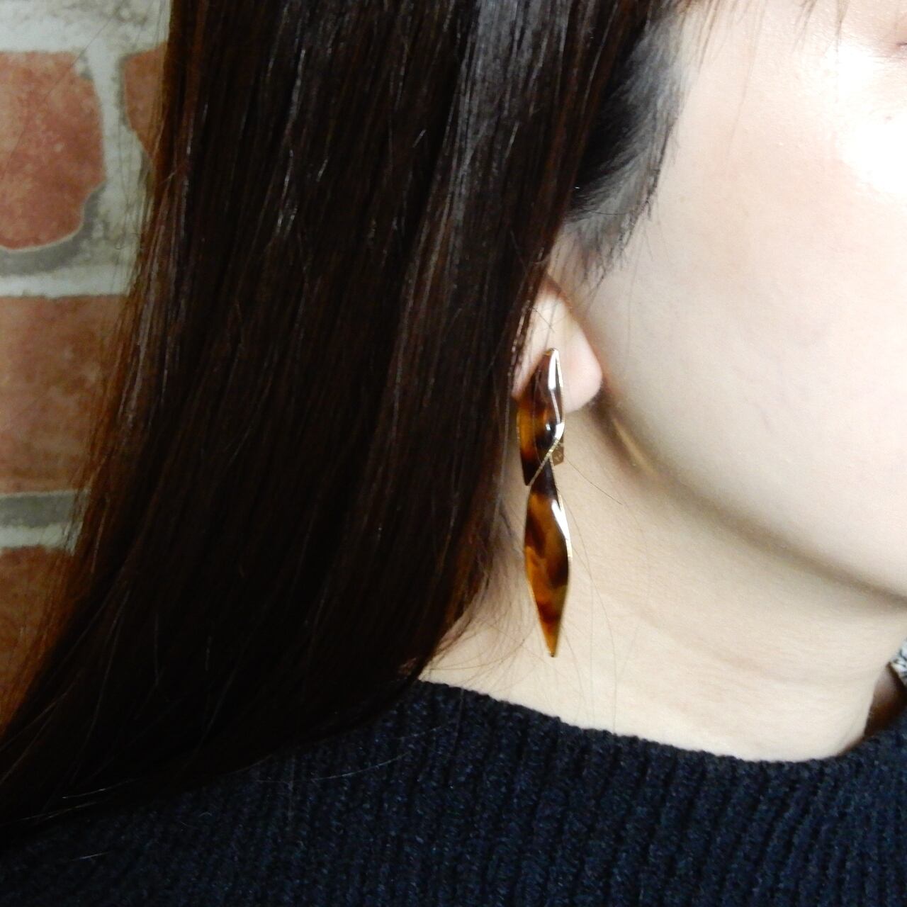 さりげなくひねりを効かせた様なリーフモチーフがモダンな雰囲気のピアス