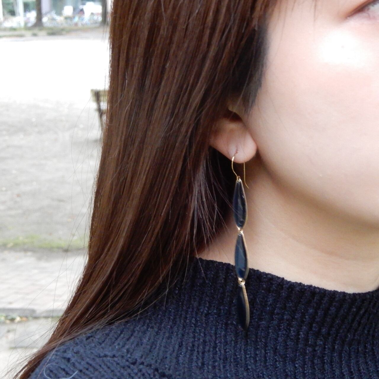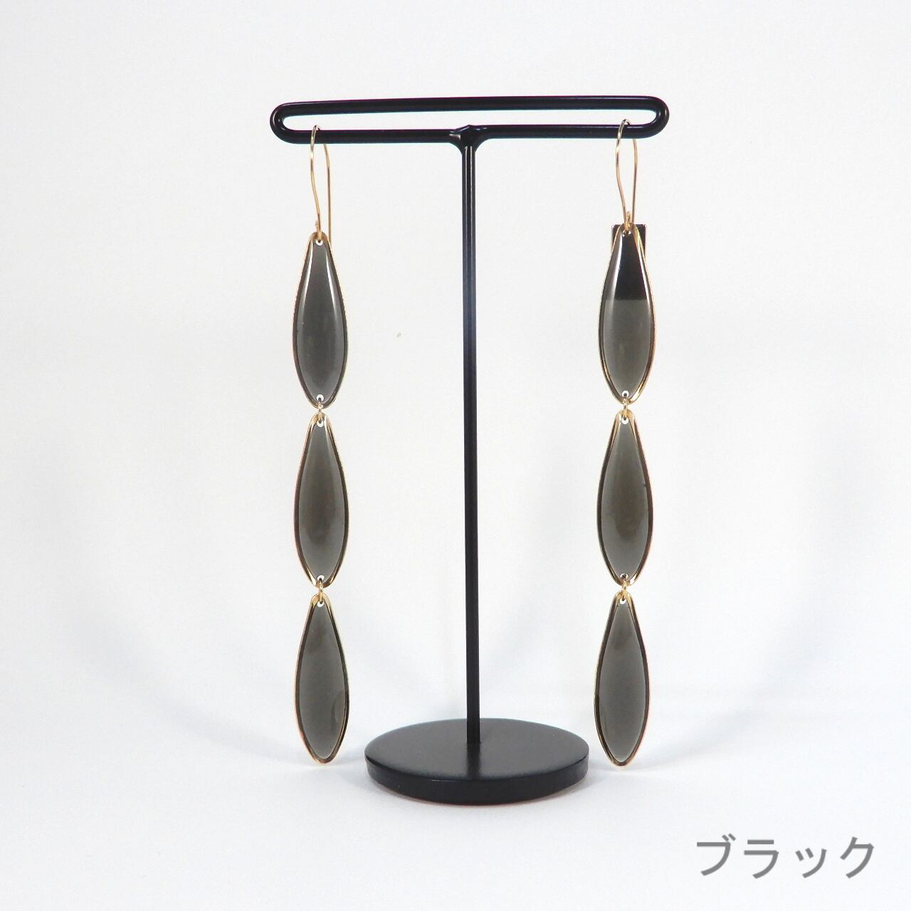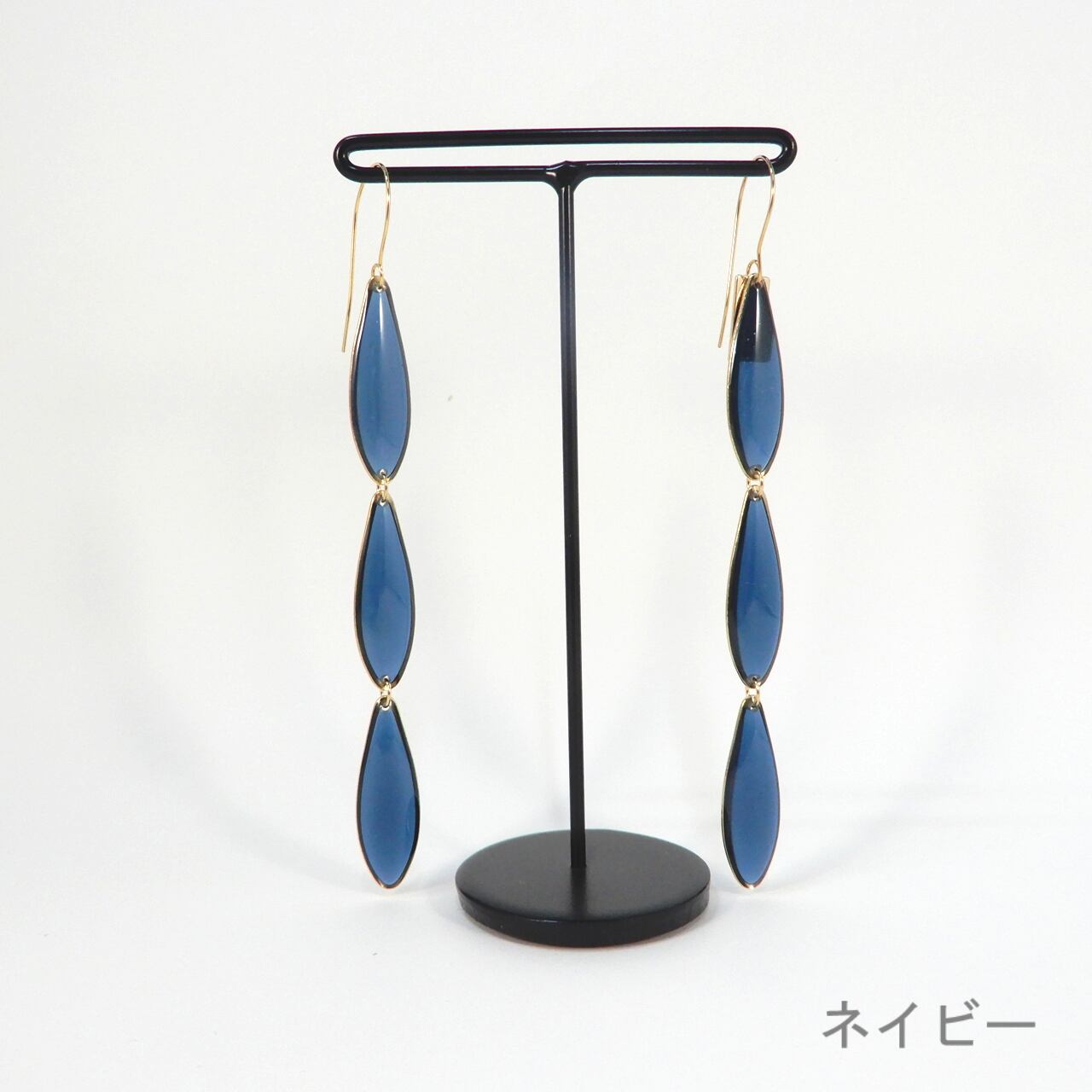 キレイな色合いのティアドロップ型のモチーフが耳元でゆらゆらと揺らめくピアス