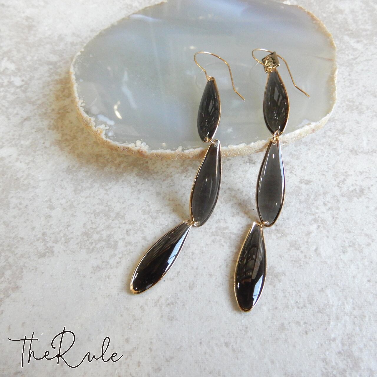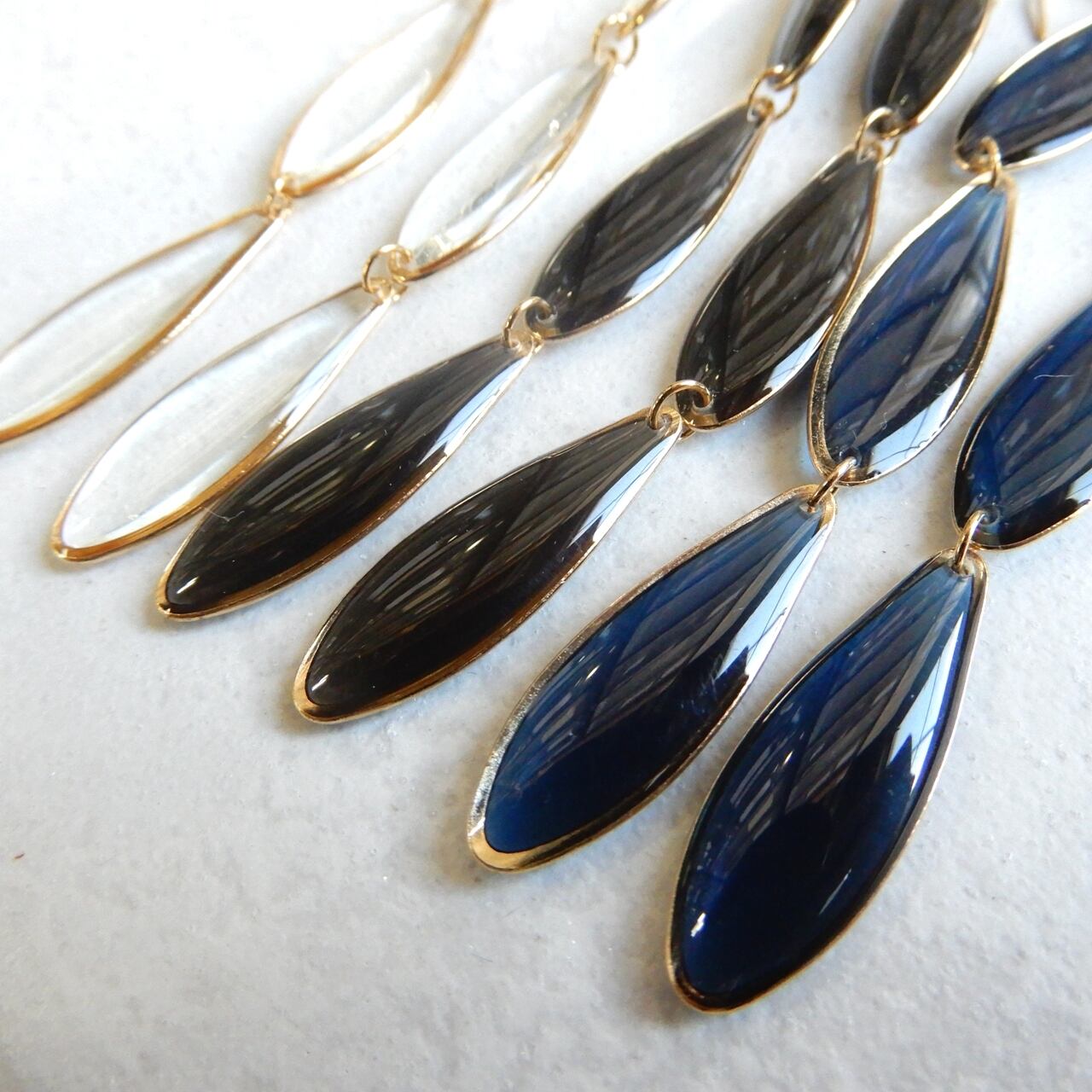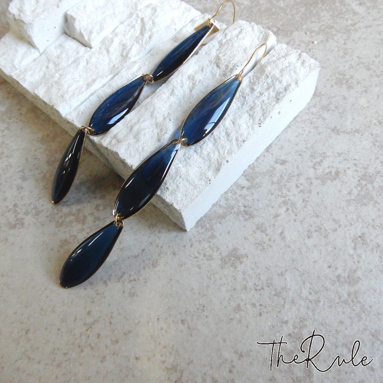 キレイな色合いのティアドロップ型のモチーフが耳元でゆらゆらと揺らめくピアス