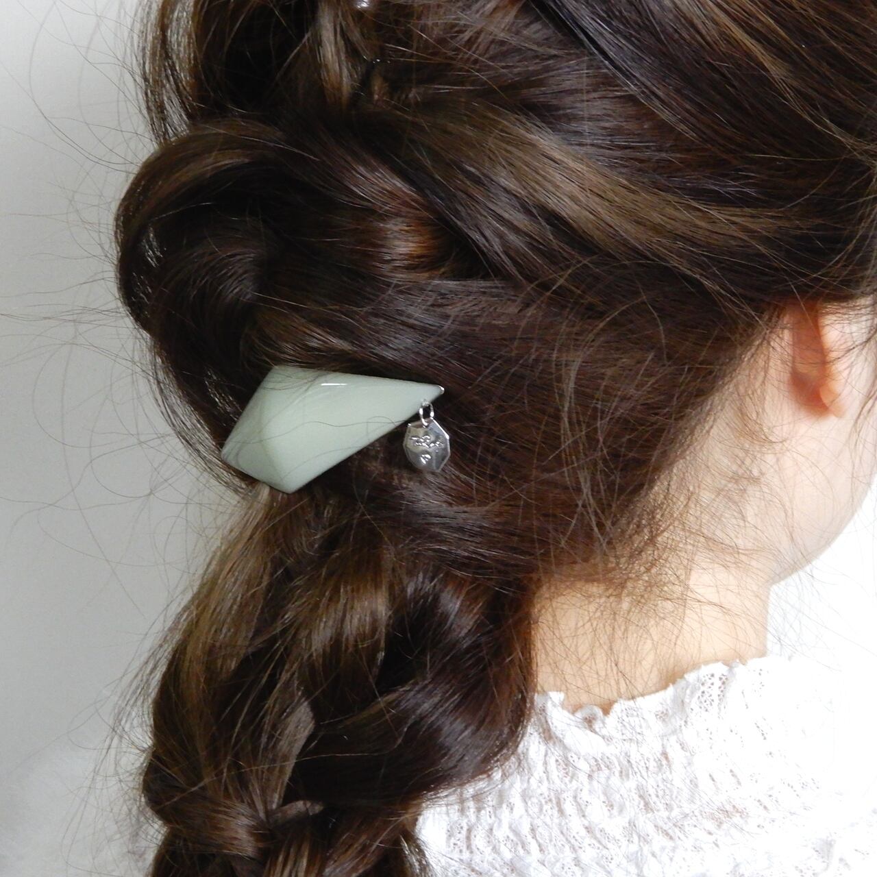細いワイヤーで様々なモチーフを型どった枠の中に特殊な樹脂を何度も塗り重ねたアクセサリーです。質感はまるでガラスのようですが軽さが特徴
