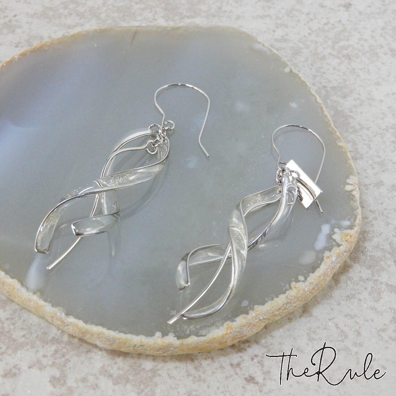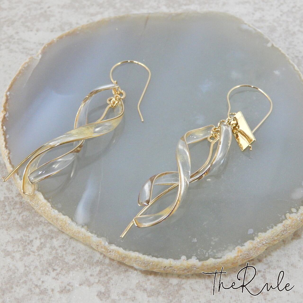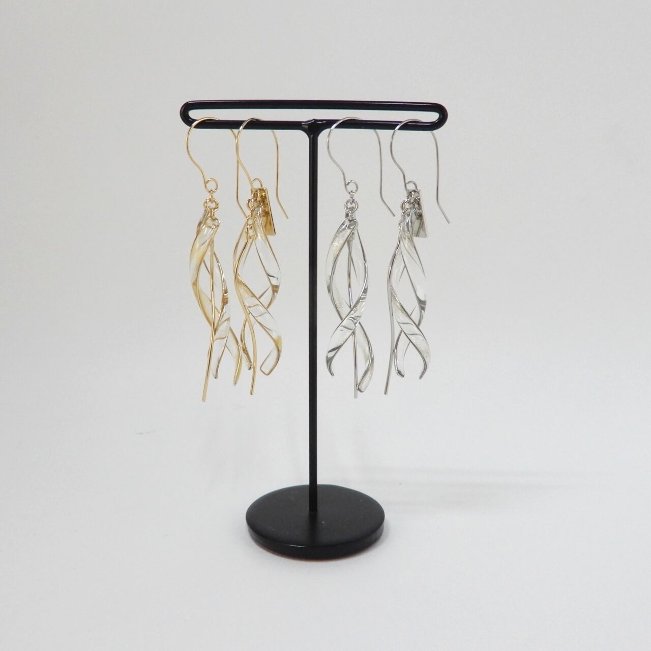 2つのスパイラル状にひねったパーツがポイントのピアス。