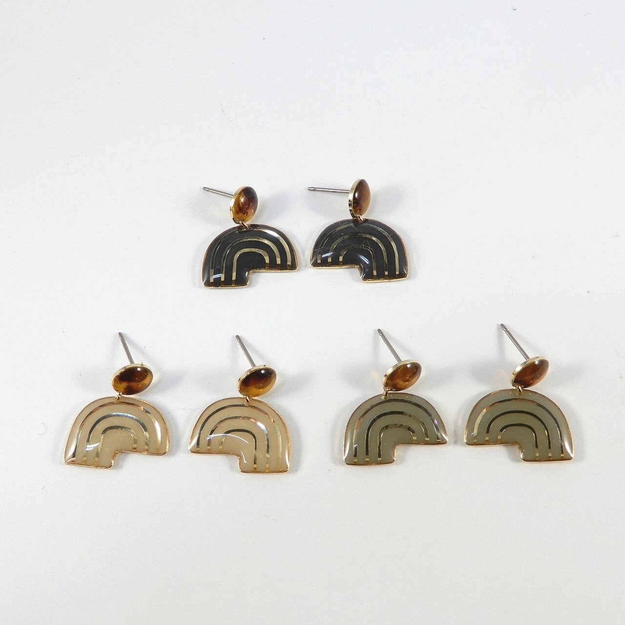 細いワイヤーで様々なモチーフを型どった枠の中に特殊な樹脂を何度も塗り重ねたアクセサリーです。質感はまるでガラスのようですが軽さが特徴