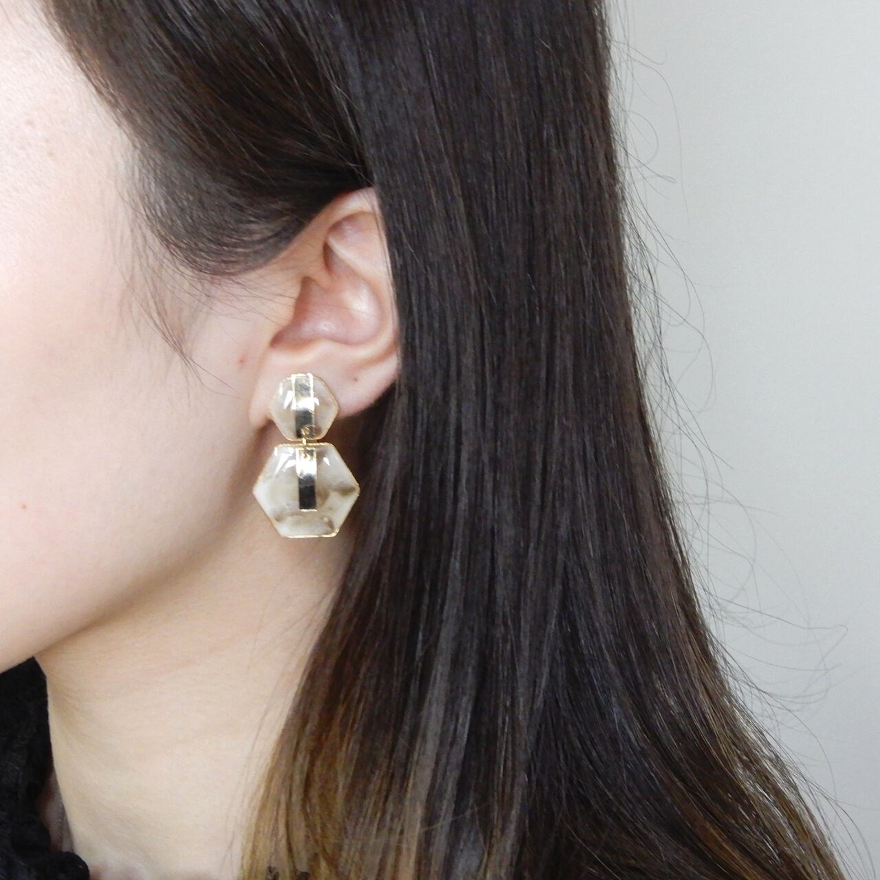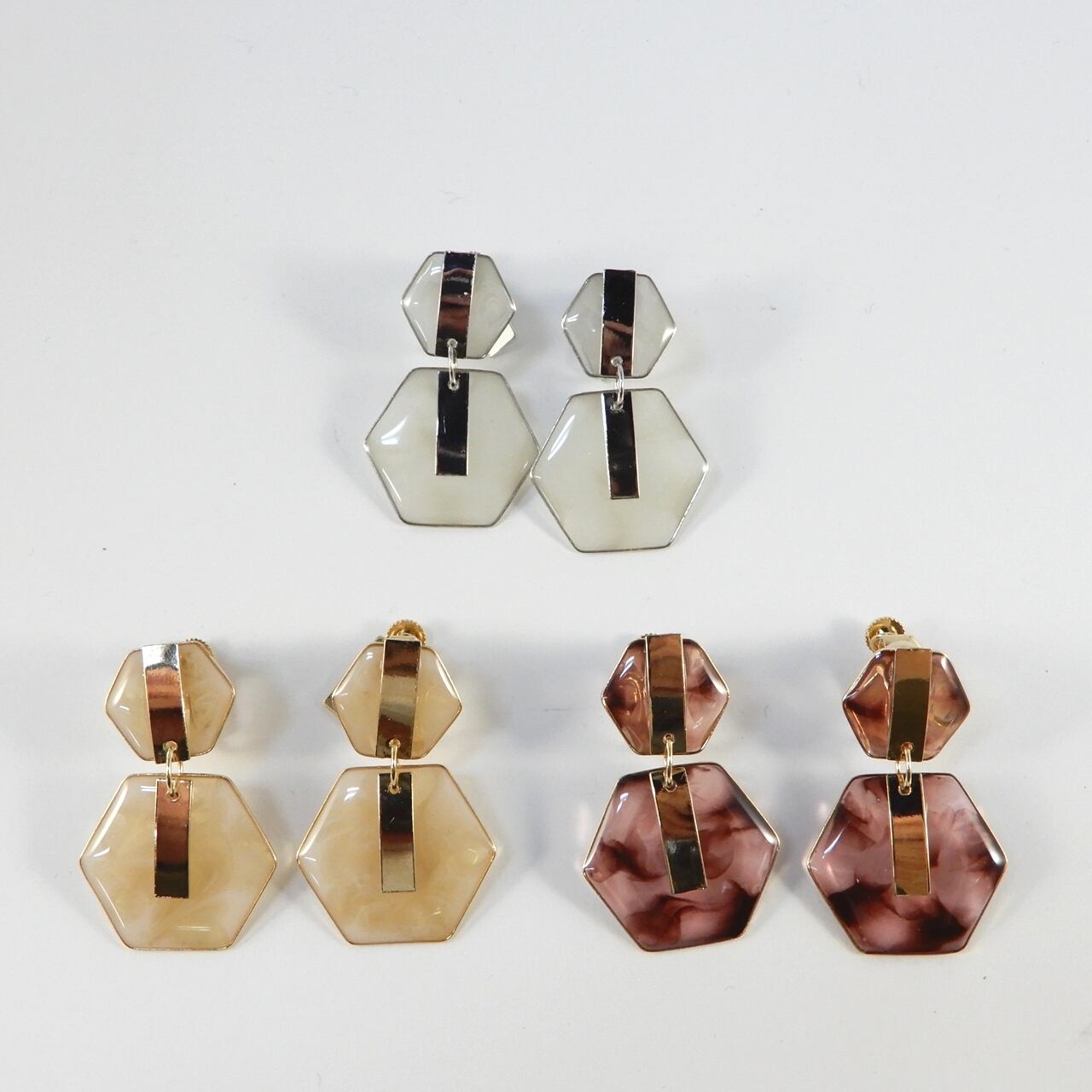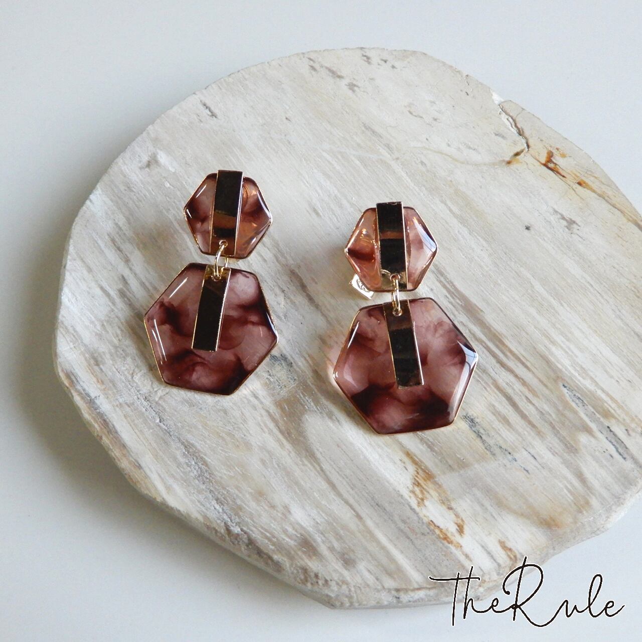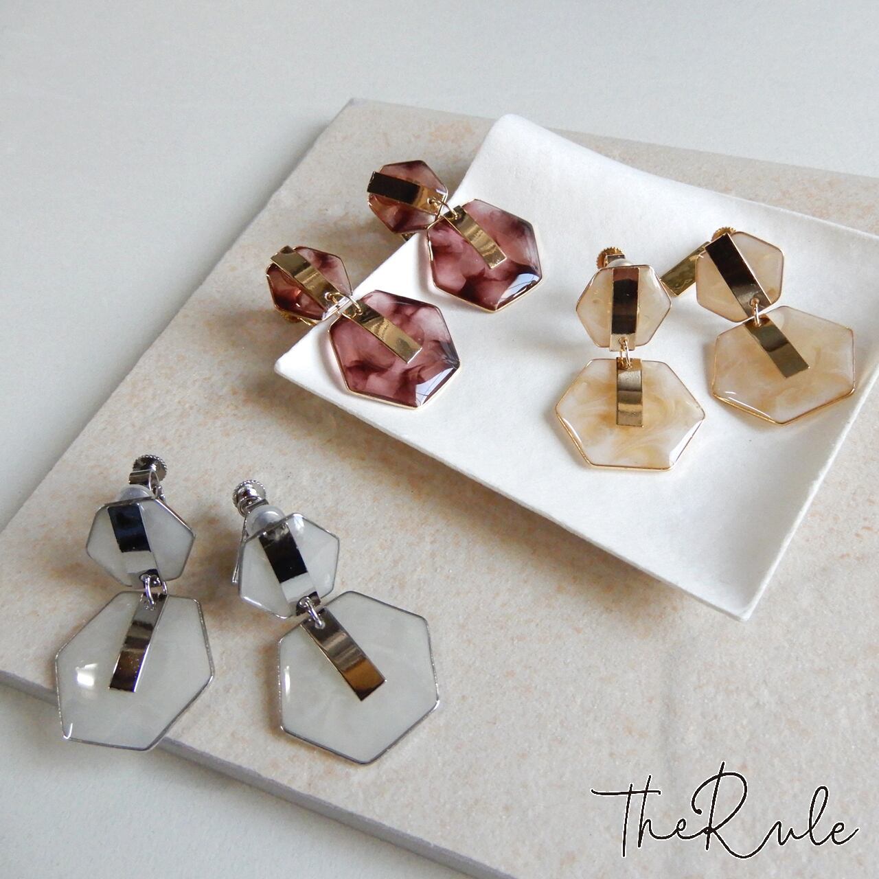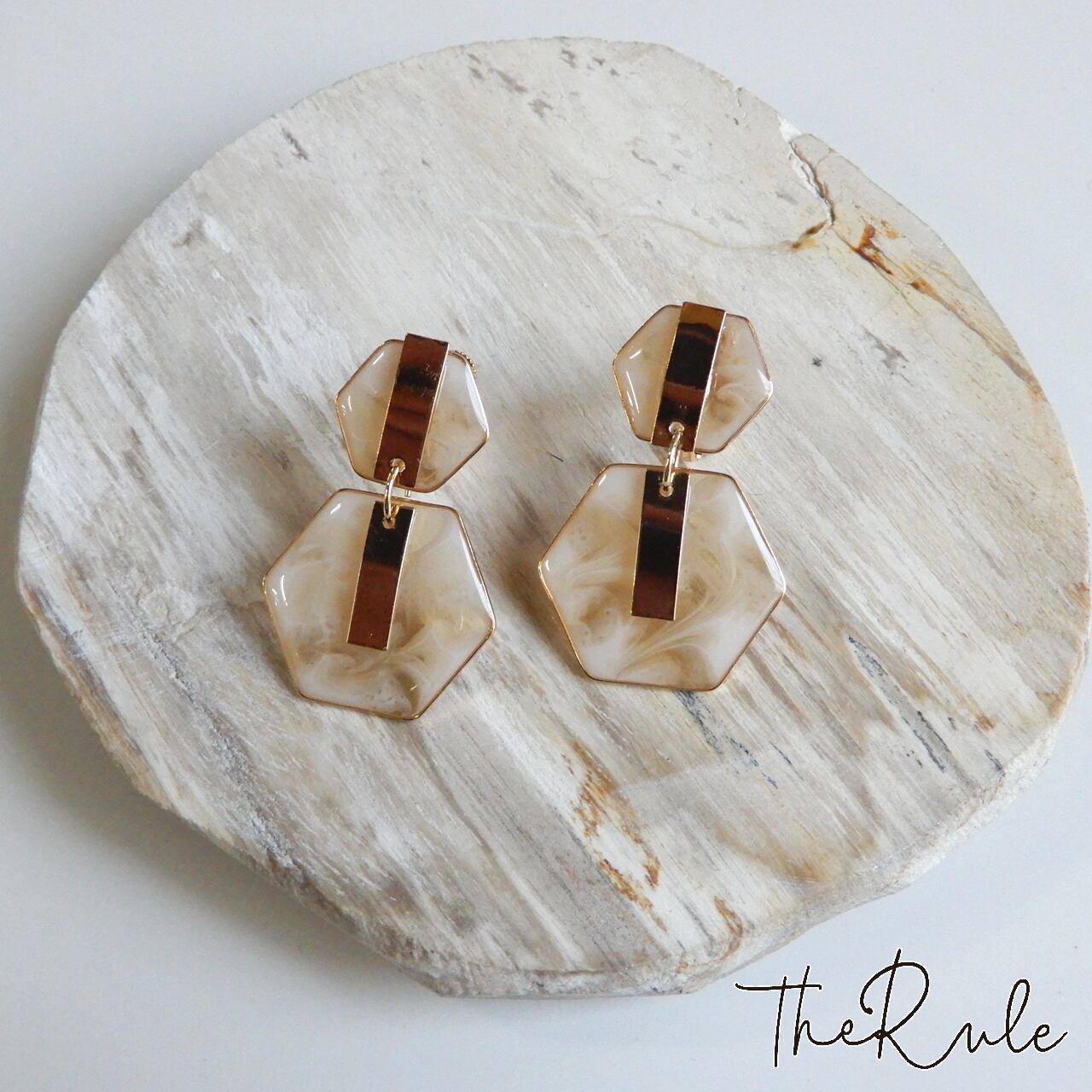 きらりと輝くメタルバーとThe Ruleお得意のマーブルカラーをMIXしたコンビイヤリング