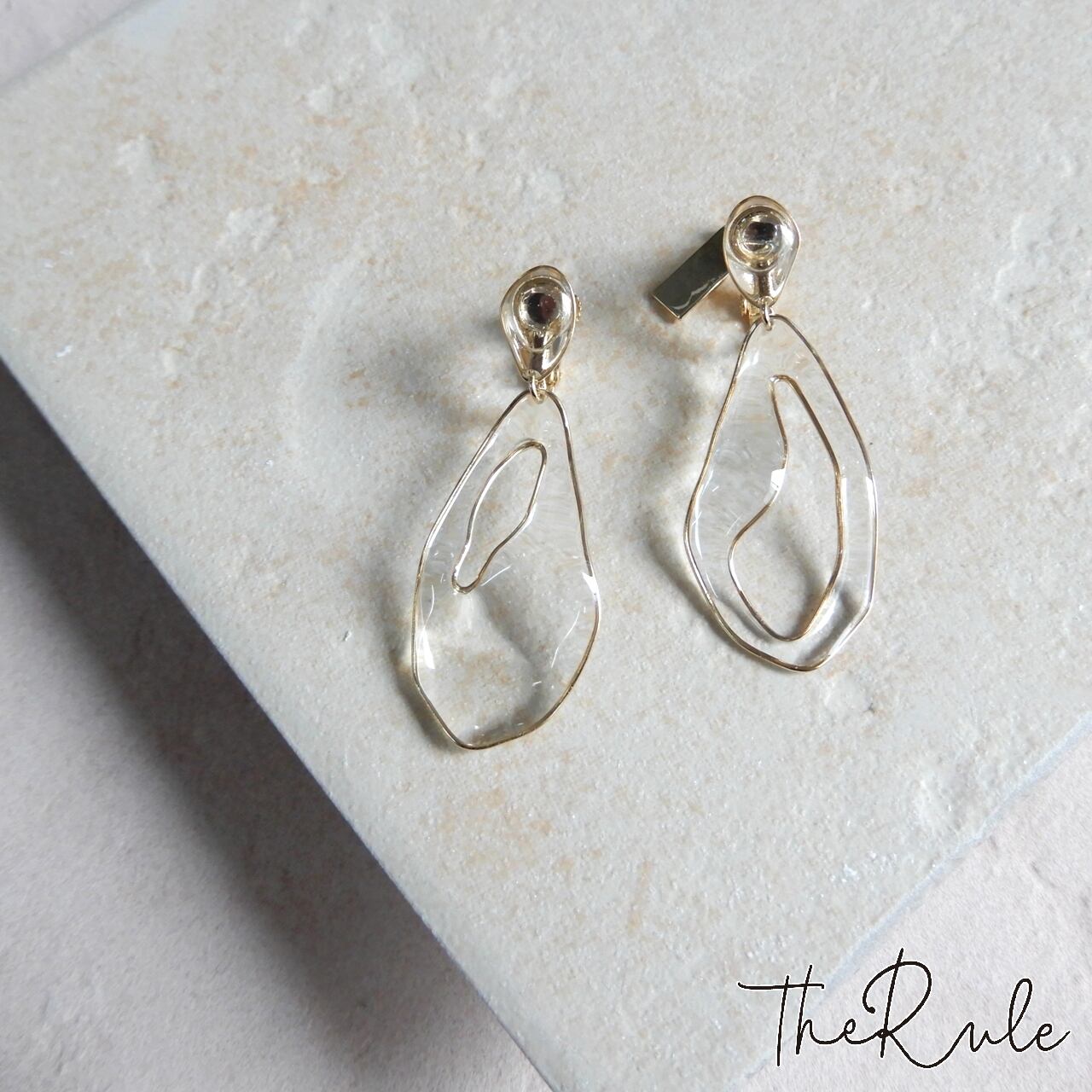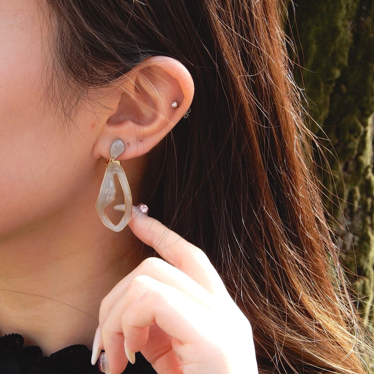 あえて凸凹と変形させたようなモチーフが色の濃淡をかもしだしスタイリングにこなれた感を添えるイヤリング。