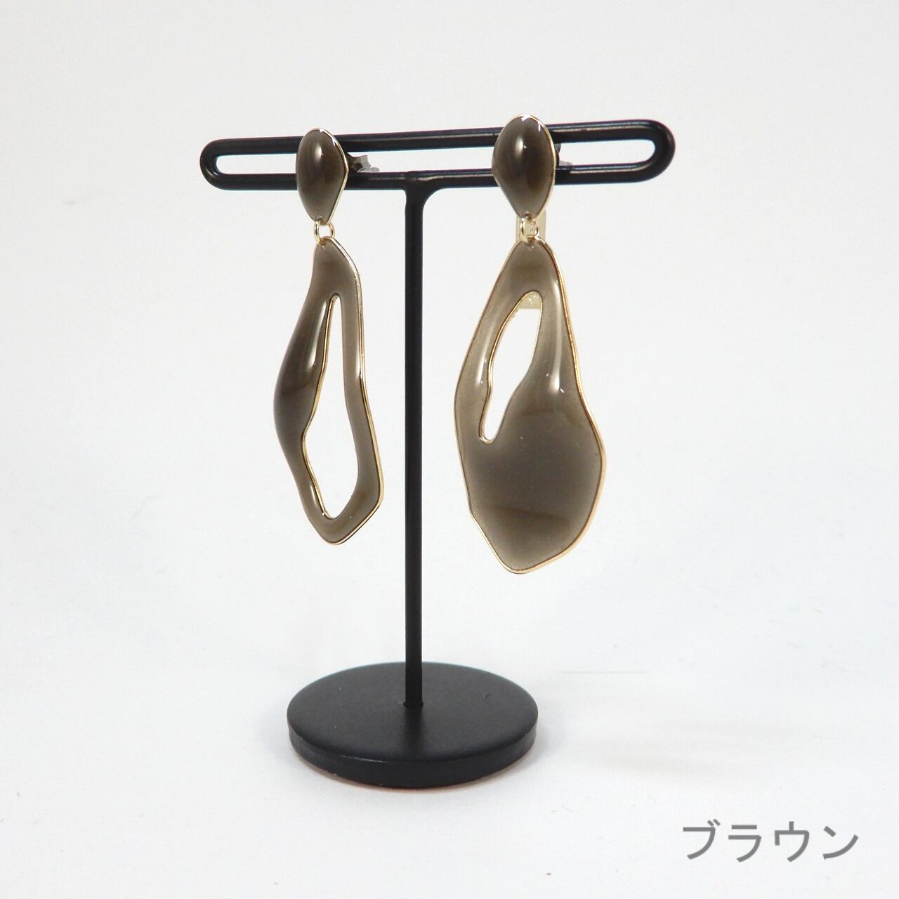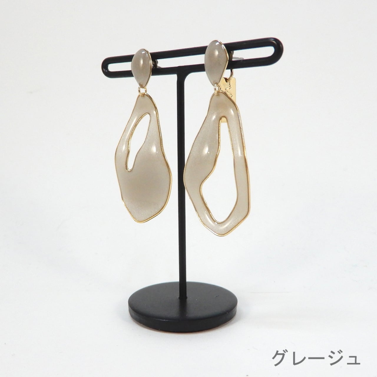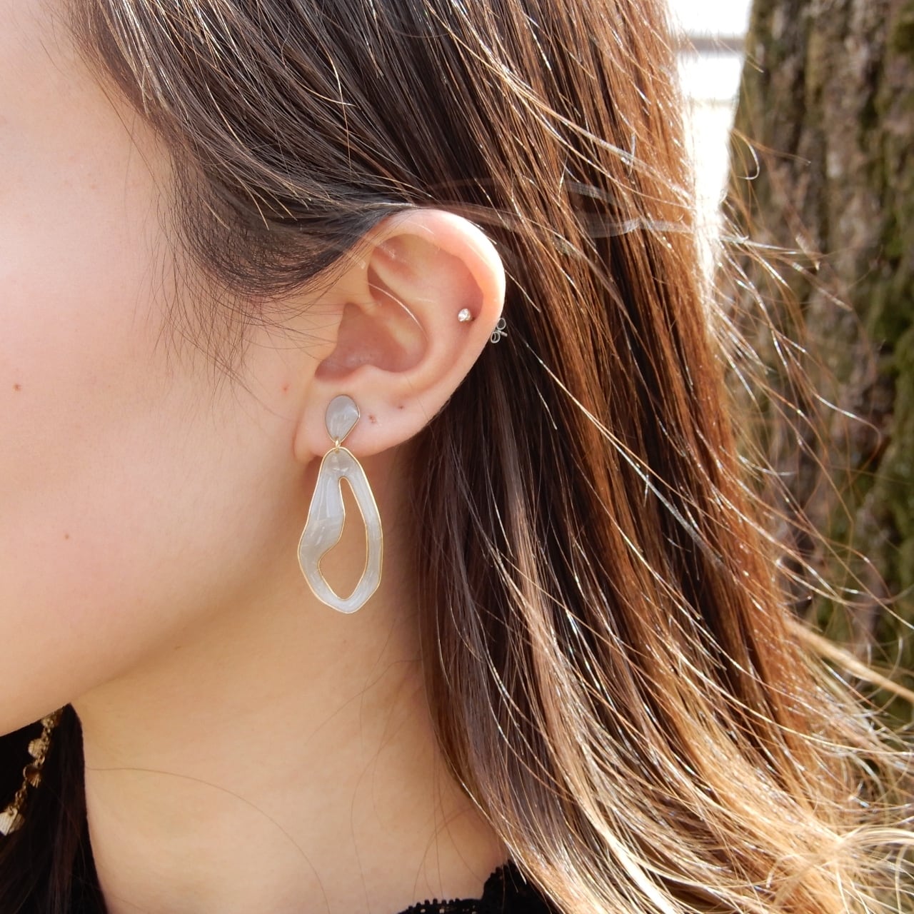 あえて凸凹と変形させたようなモチーフが色の濃淡をかもしだしスタイリングにこなれた感を添えるピアス。
