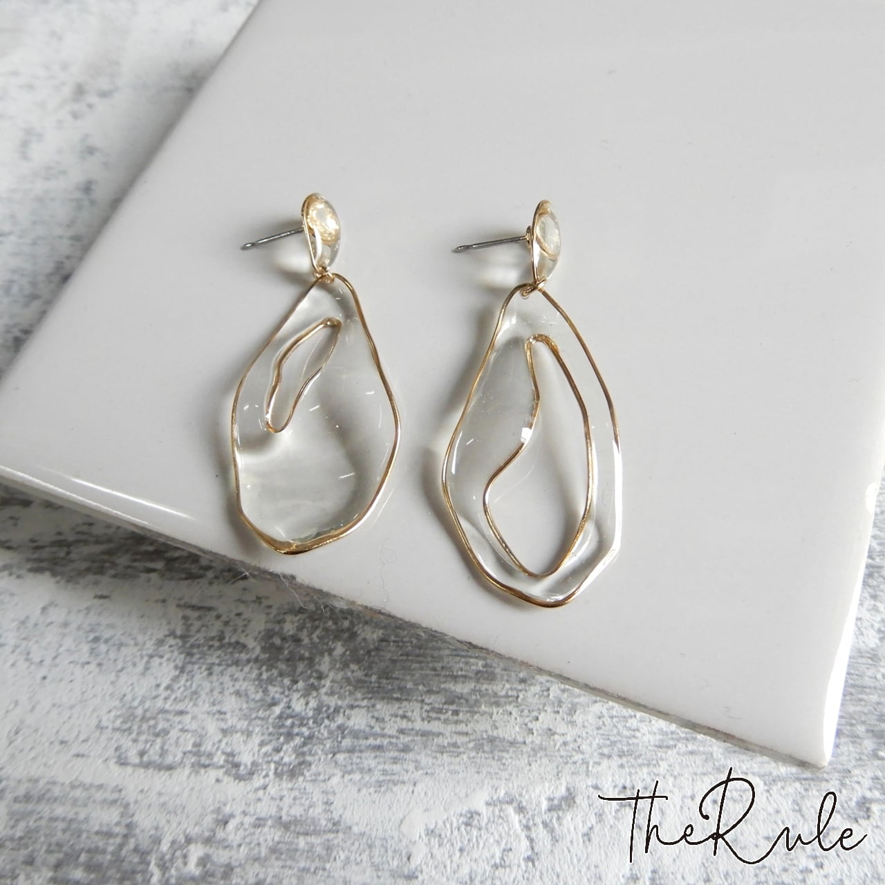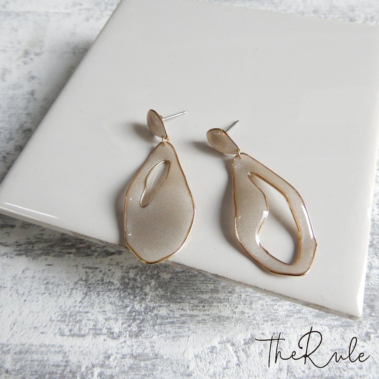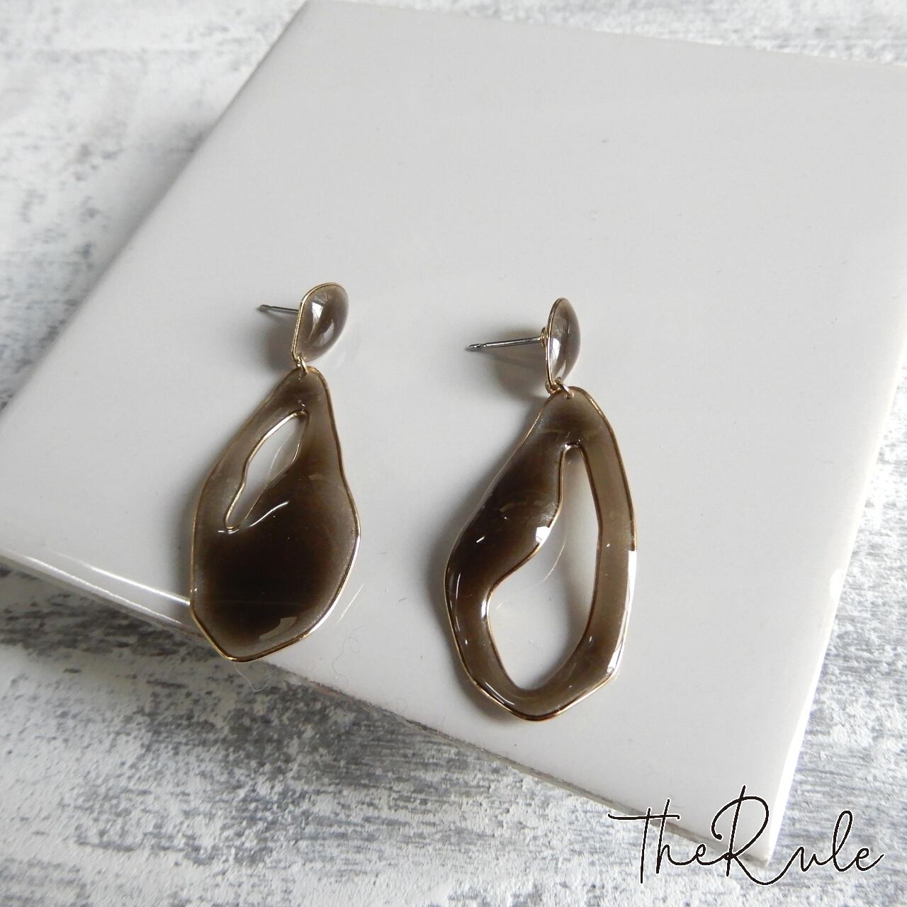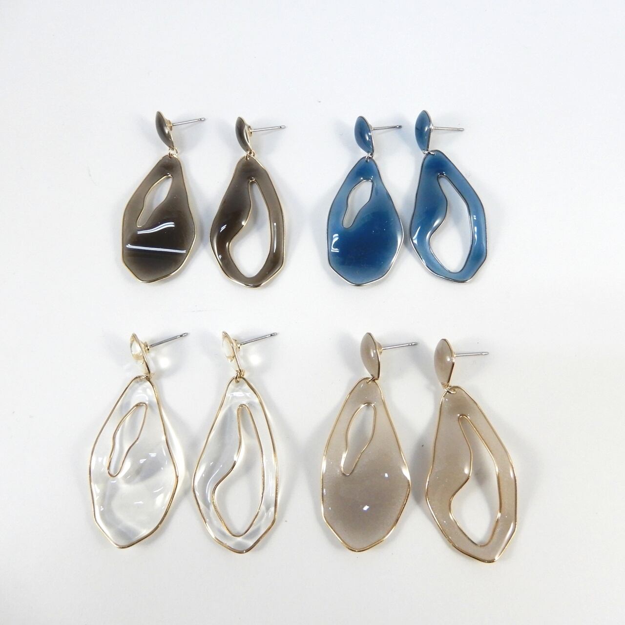 あえて凸凹と変形させたようなモチーフが色の濃淡をかもしだしスタイリングにこなれた感を添えるピアス。