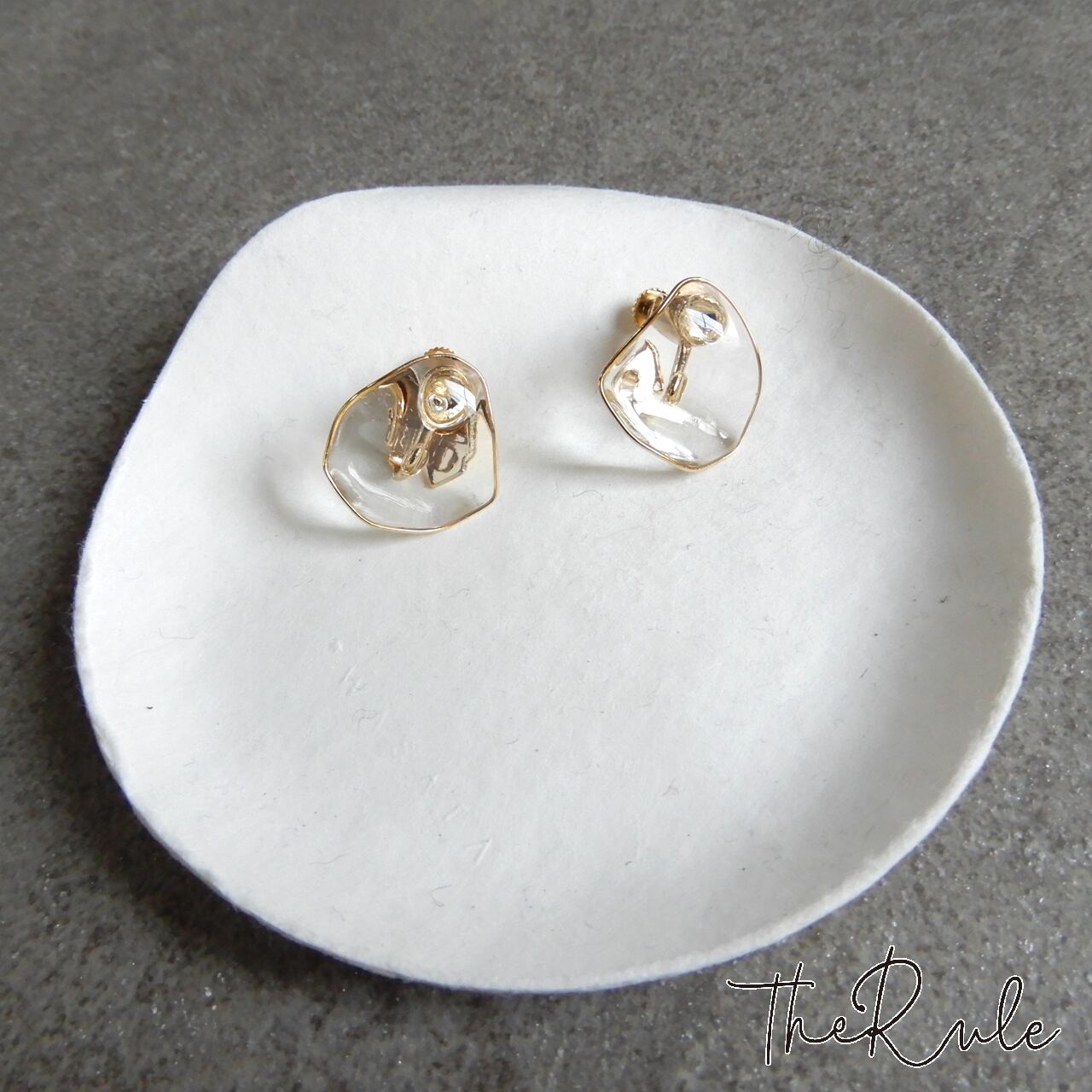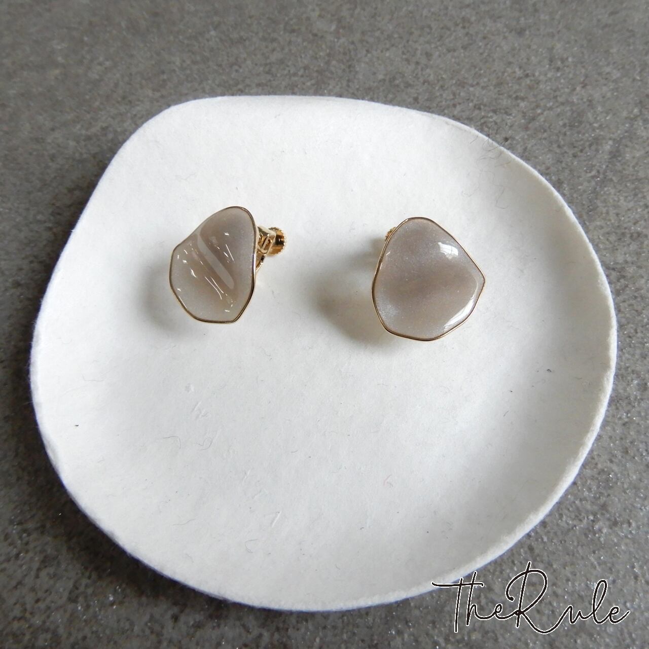 あえて凸凹と変形させたようなモチーフが色の濃淡をかもしだしスタイリングにこなれた感を添えるイヤリング。