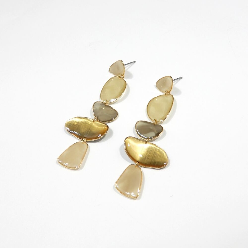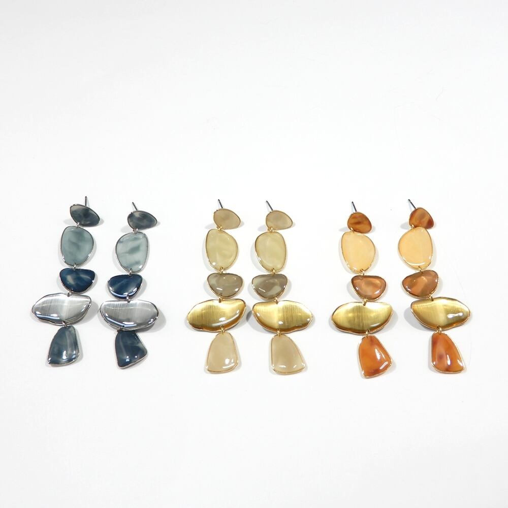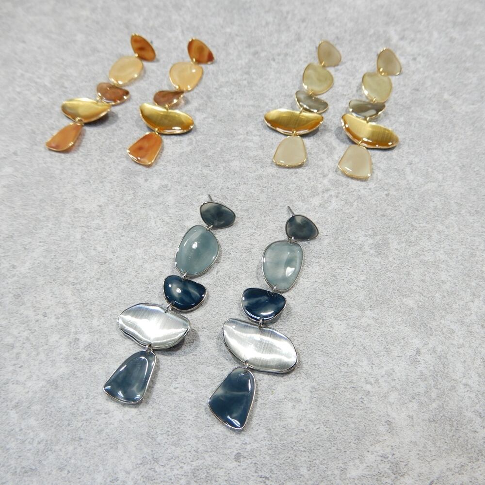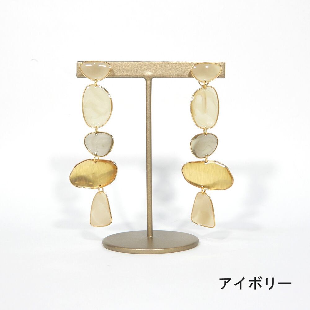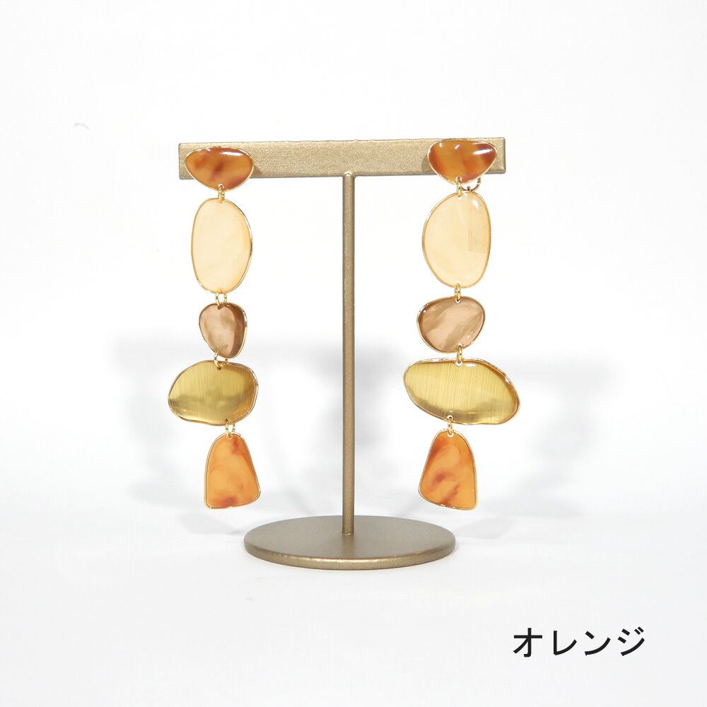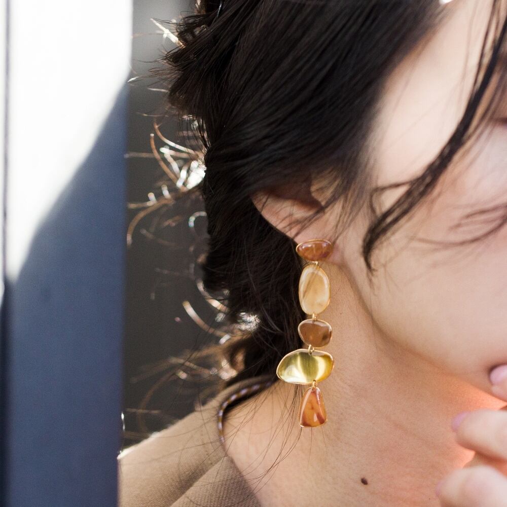様々なシーンで使えるよう微妙な配色でまとめたロングピアス