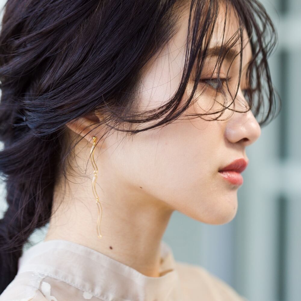 揺れ感漂うフェミニンなピアスは、さりげなくコーデのアクセントになります。