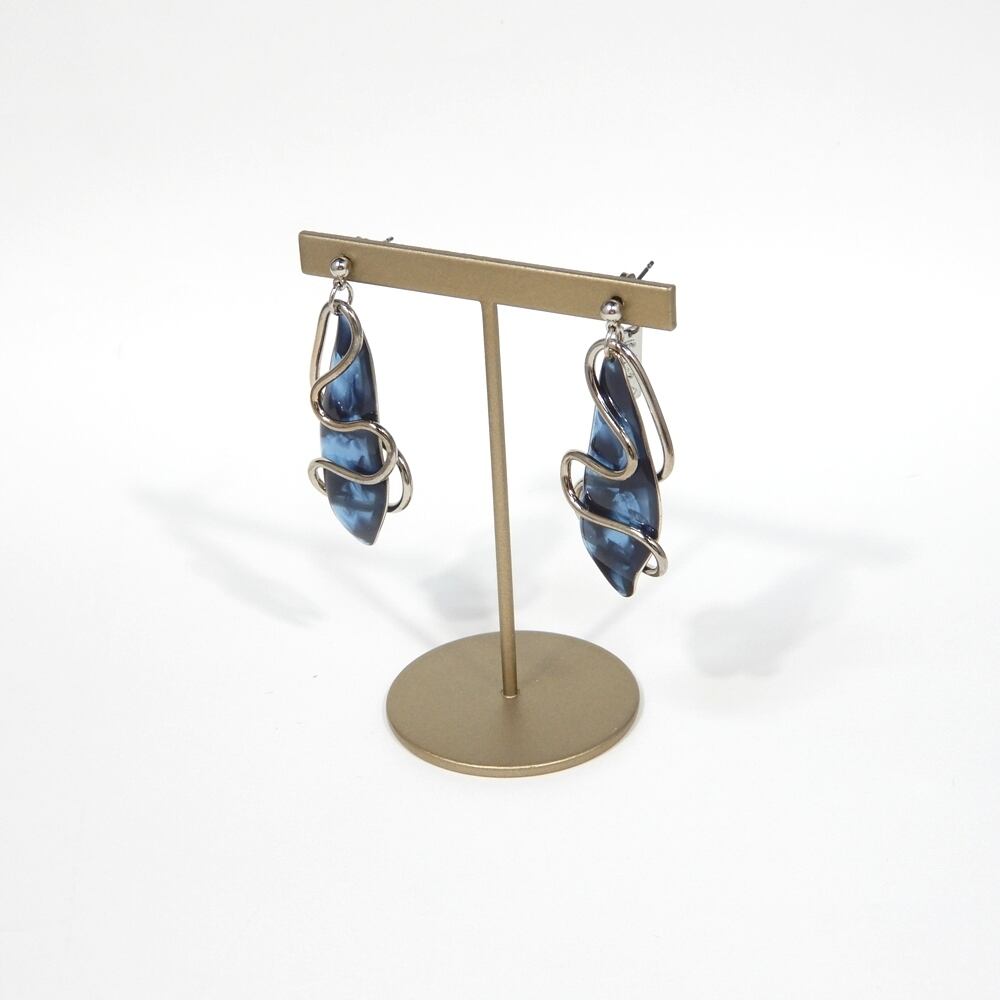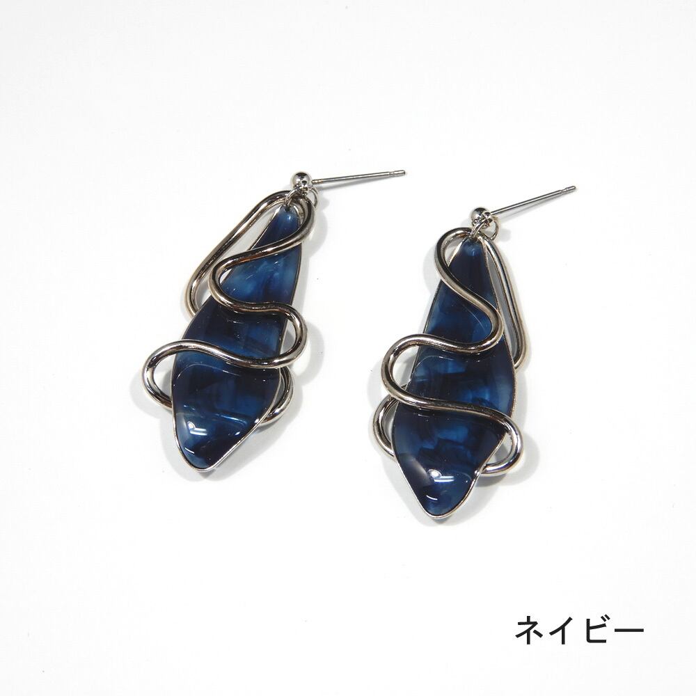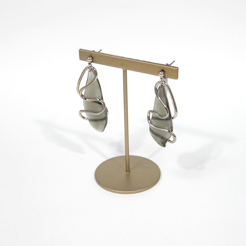 細いワイヤーで様々なモチーフを型どった枠の中に特殊な樹脂を何度も塗り重ねたアクセサリーです。質感はまるでガラスのようですが軽さが特徴