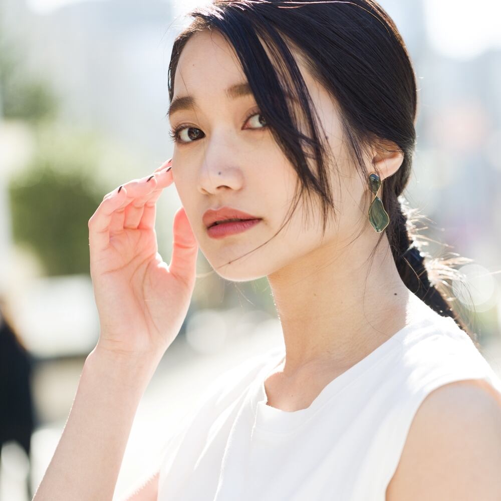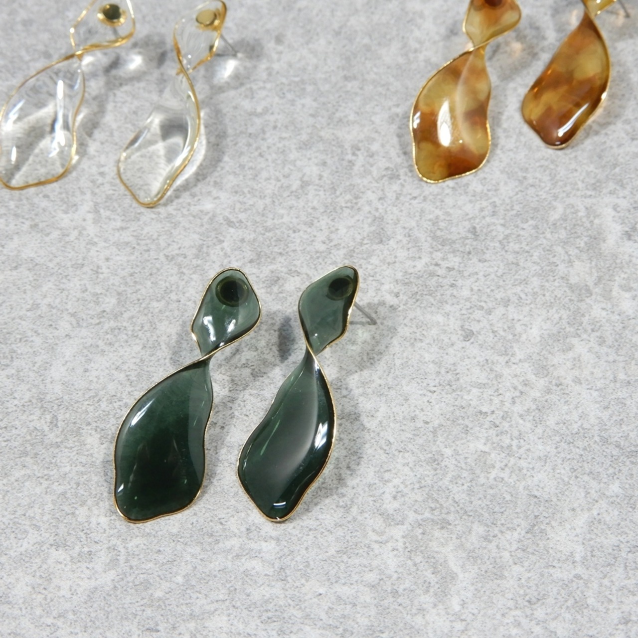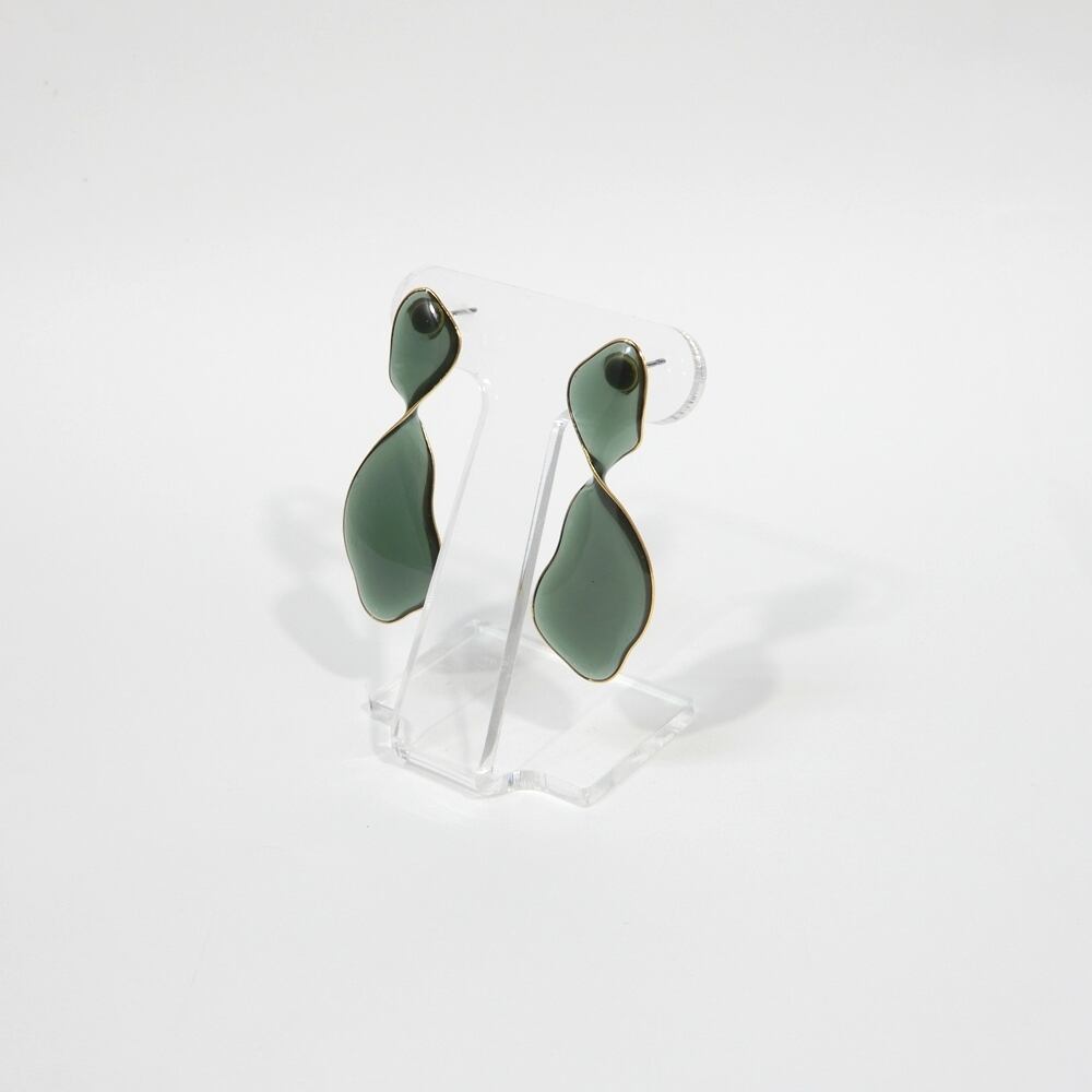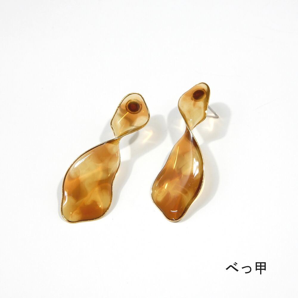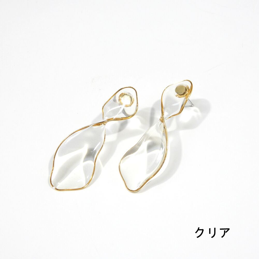 自分の顔がうつるほどのツヤ感を出すためにクリアカラーとひねりデザインのみで仕上げたピアス。