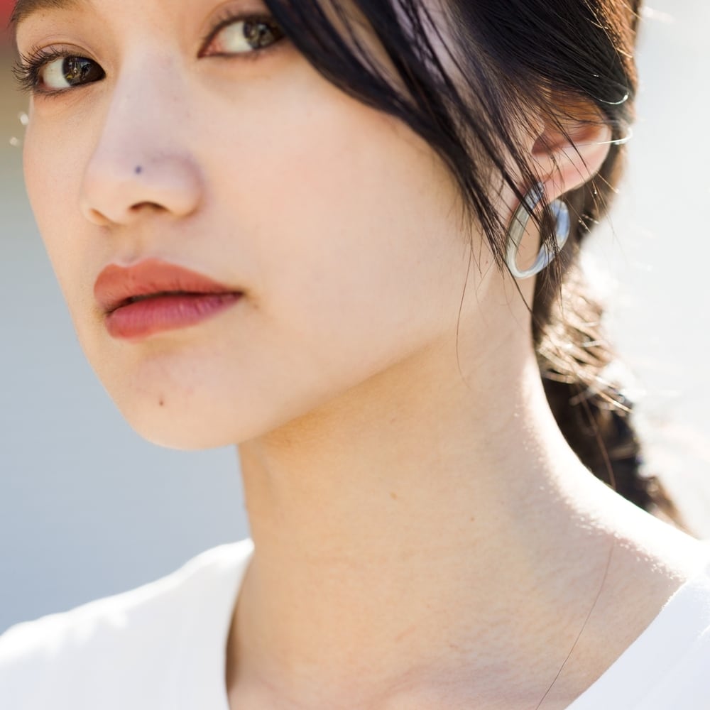 つややかなメタルライクの輝きが耳元に華やぎをプラスするカラーリングはコーディネートにこなれ感をプラスします。